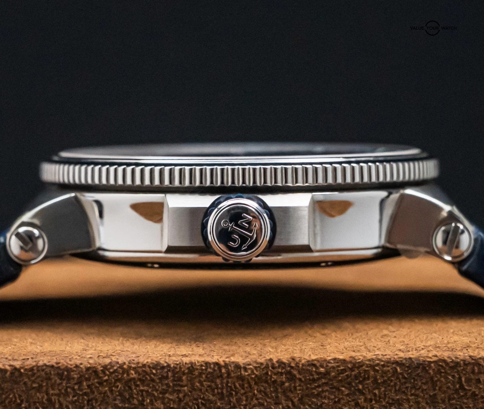 The watch is in phenomenal condition with only very minor wear, nothing notable. Some stickers are still present on the case. Keeping good time on my timegrapher when tested! It’s ready to go on your wrist and is just so stunning, I cannot stop raving about this UN. I love the serialized plate on the left side of the case, transparent caseback, and tourbillon movement. The way the light reflects off the textured dial is simply mesmerizing!