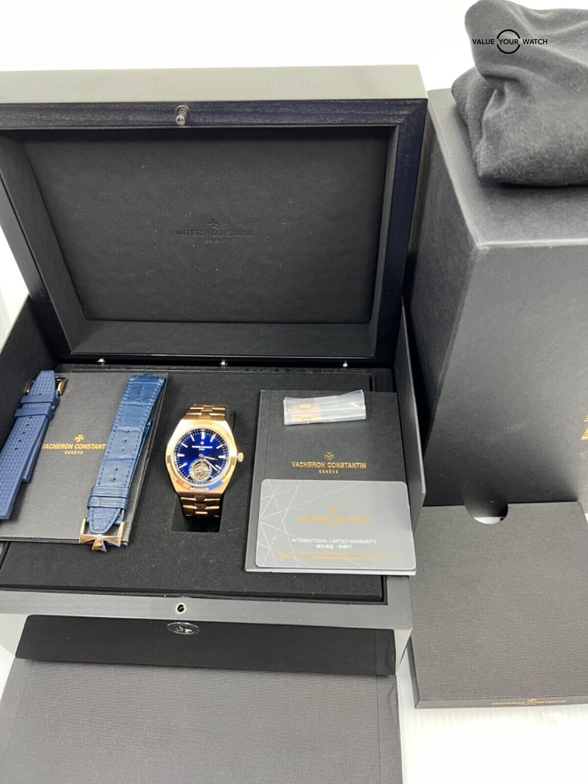 Specification: 2022 Mint Vacheron Constantin Complete Blue Dial Rose Gold Overseas Tourbillon