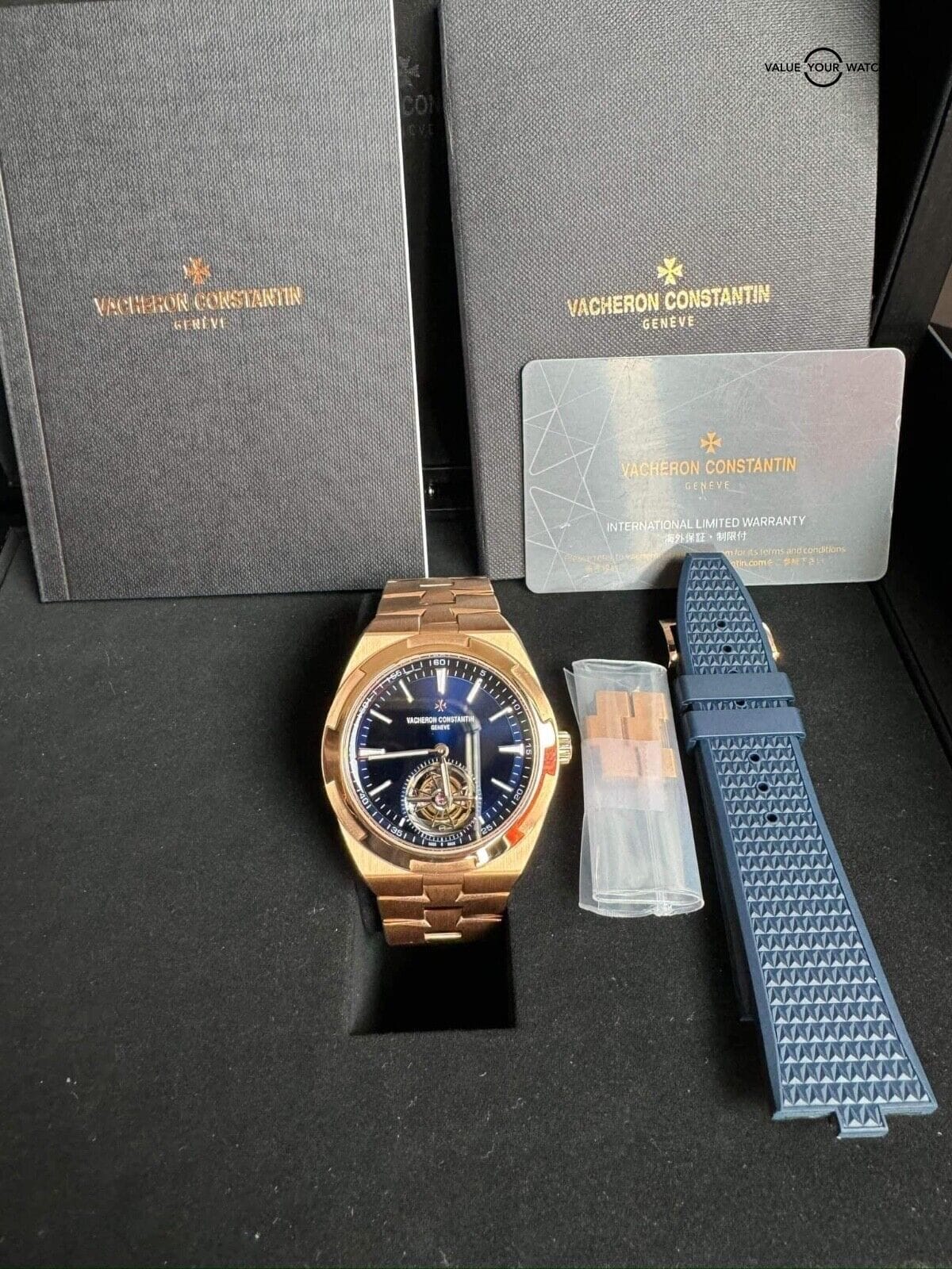 2022 Vacheron Constantin Complete Blue Dial Rose Gold Overseas Tourbillon