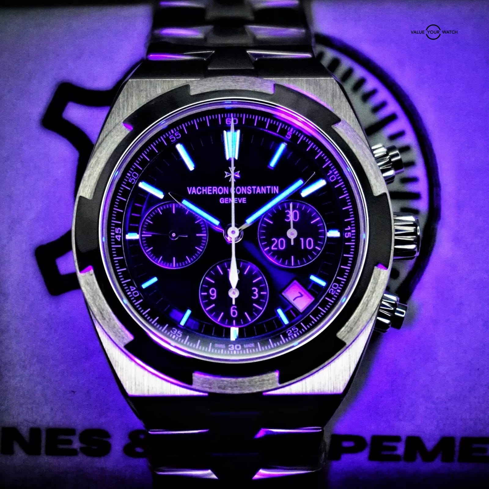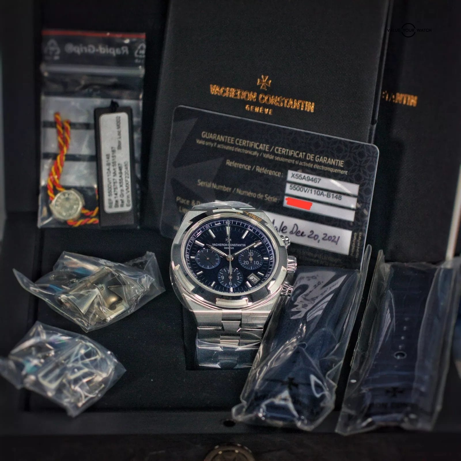 This timepiece is one of the flagship models in the VC lineup & one of the most desirable watches on the planet. This beautiful timepiece features an integrated bracelet with Vacheron’s quick-release strap change system & additional rubber & leather straps.