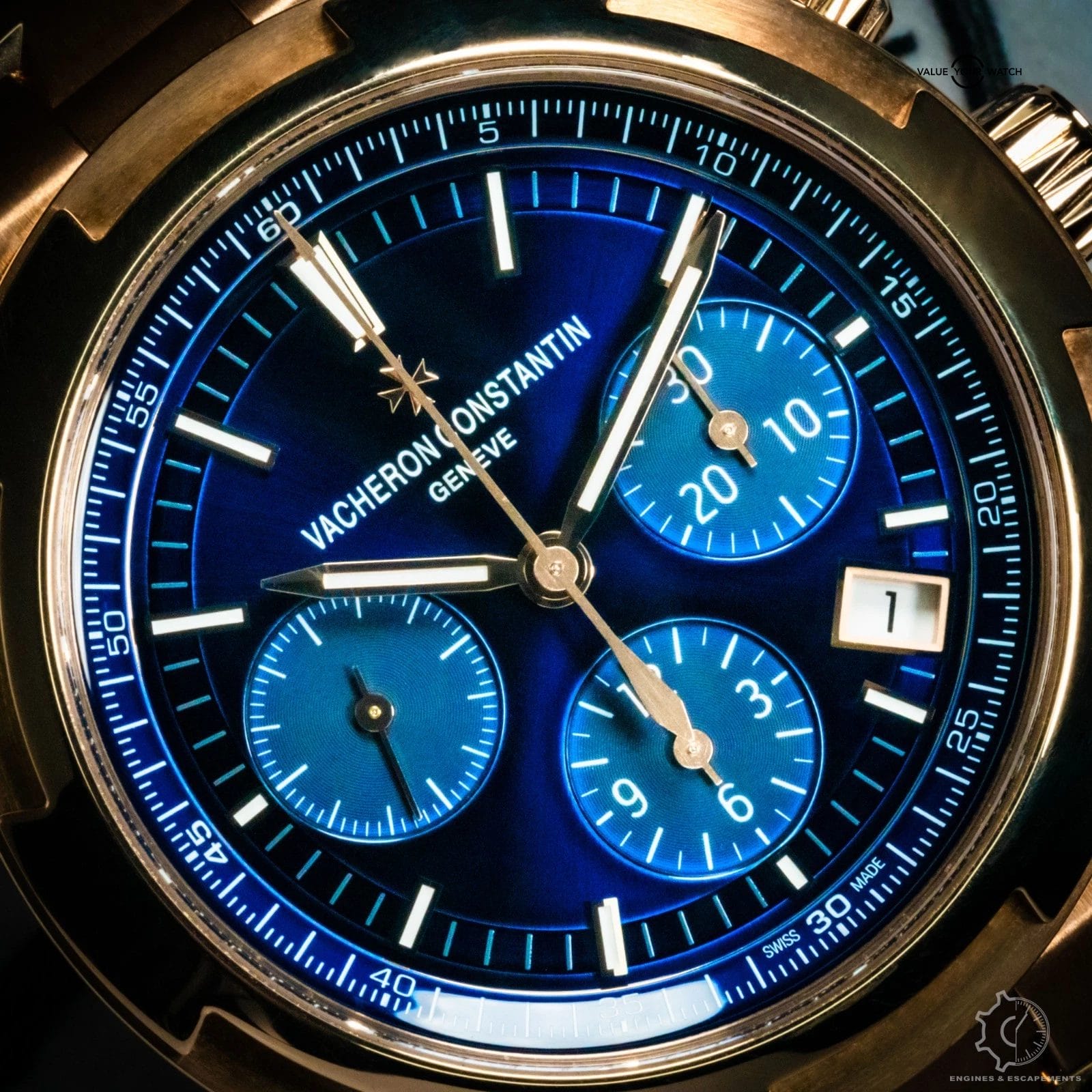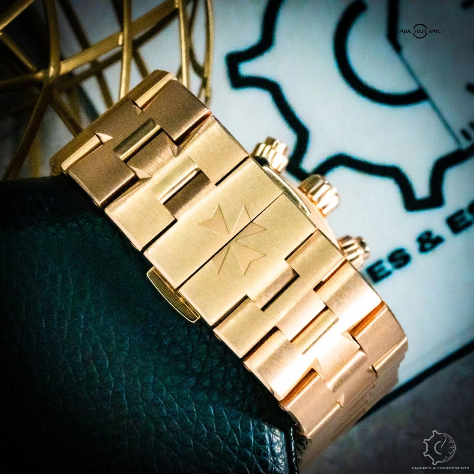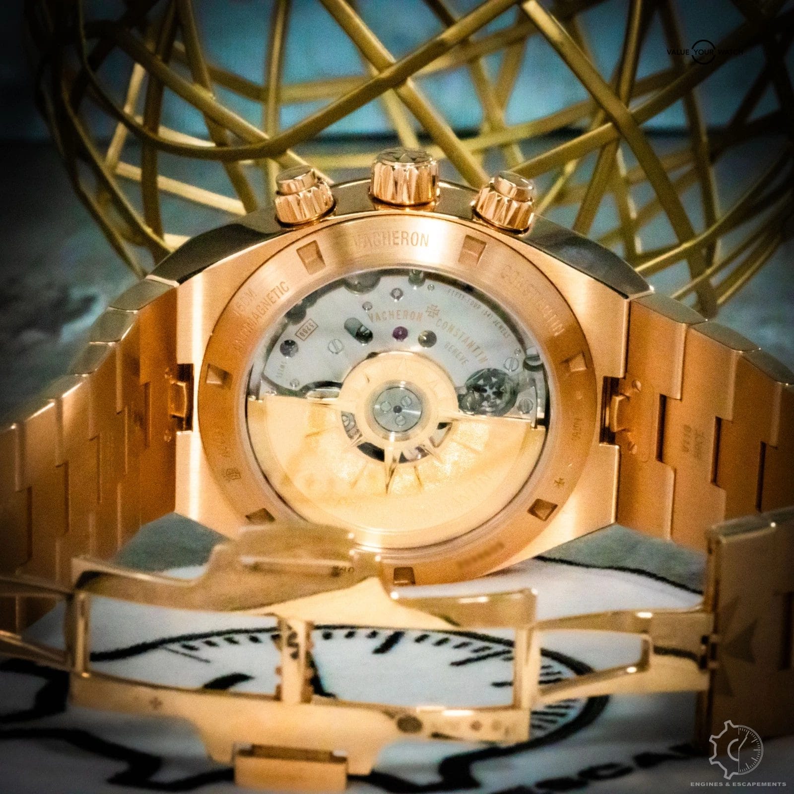 At its heart is Vacheron Constantin’s in-house automatic chronograph movement, engineered for precision, reliability, and performance. Finished to the brand’s exacting standards, the movement reflects centuries of watchmaking heritage while delivering the robustness expected from a modern luxury sports chronograph. This seamless fusion of technical excellence and refined finishing underscores Vacheron Constantin’s position at the pinnacle of Swiss watchmaking.