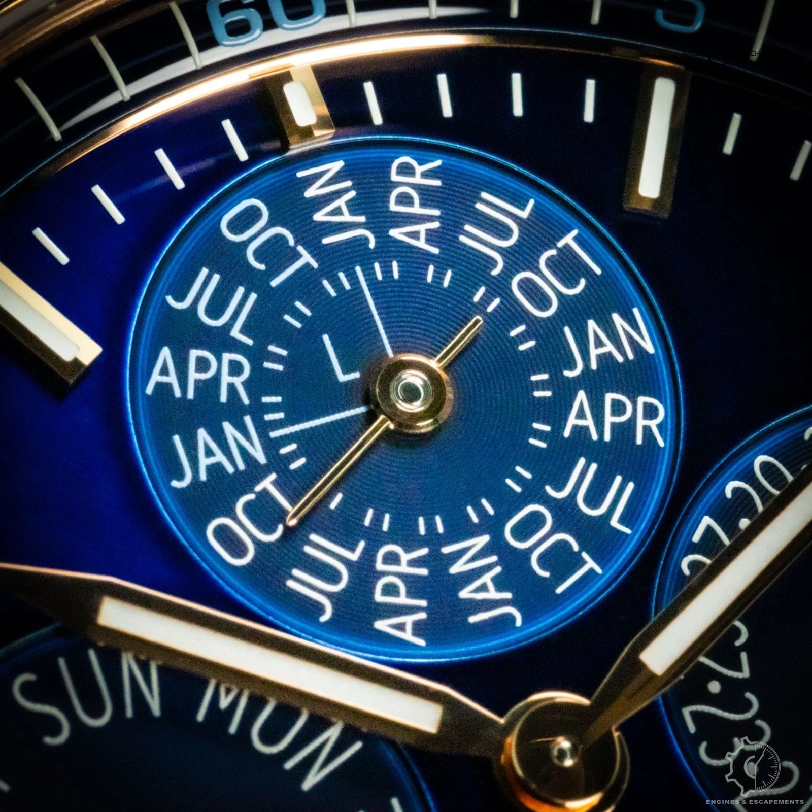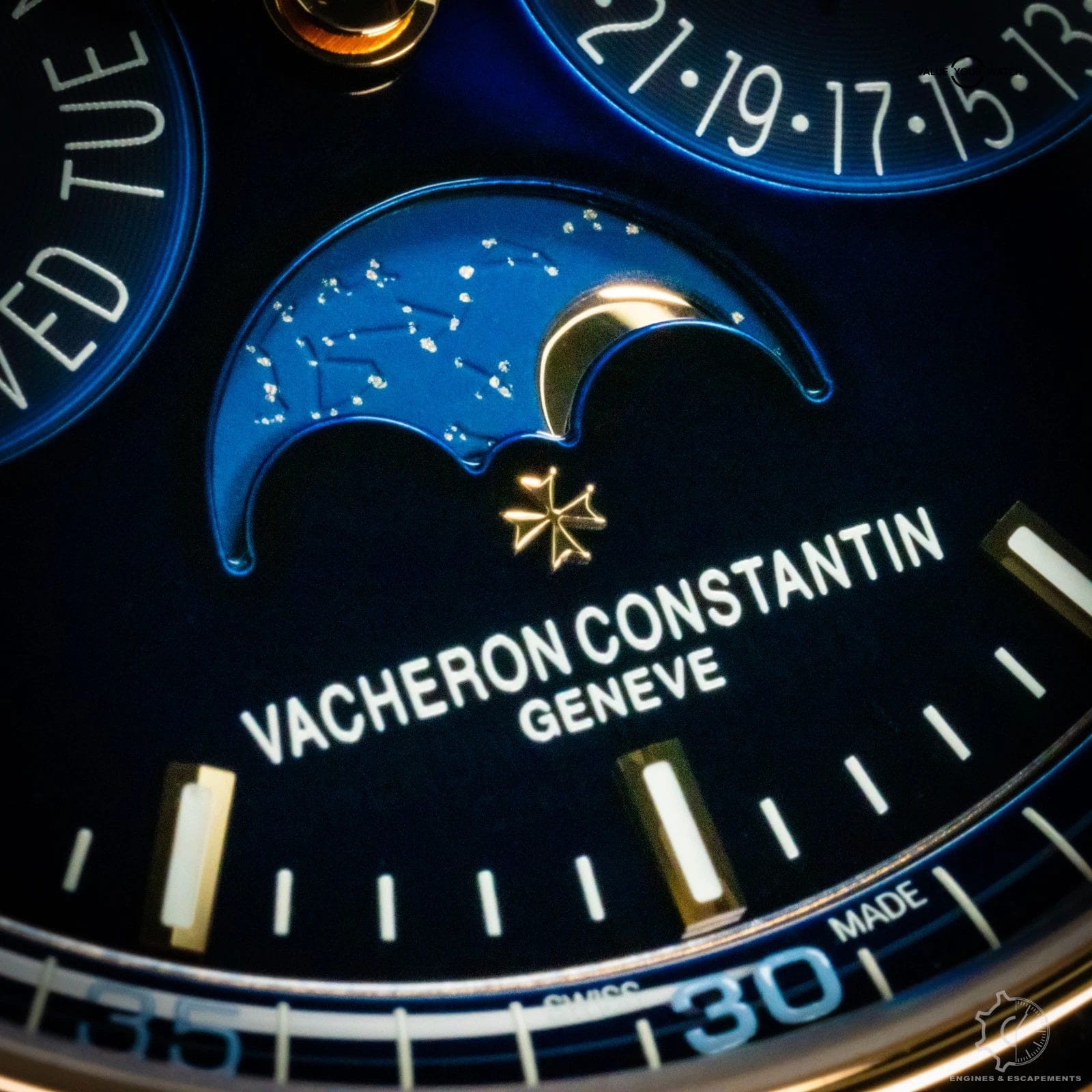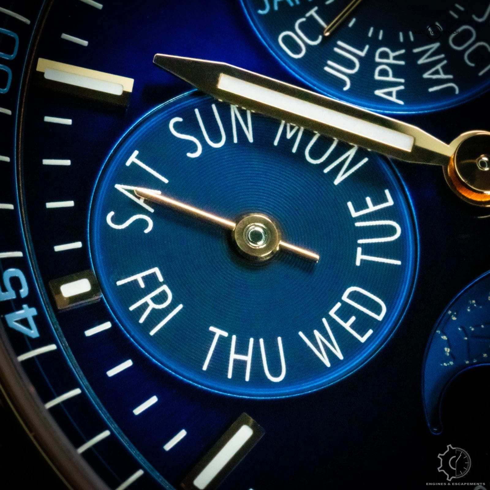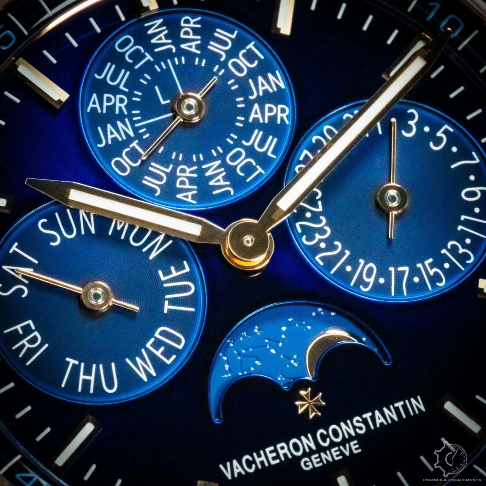The Vacheron Constantin Overseas Perpetual Calendar 4300v is a striking blend of modern sport-luxury and refined elegance. Its rose-gold case gives the watch a warm, sophisticated presence, while the vivid blue dial adds depth and energy—creating a contrast that feels both contemporary and timeless. The polished and brushed surfaces of the case catch the light beautifully, enhancing the watch’s clean, architectural lines.