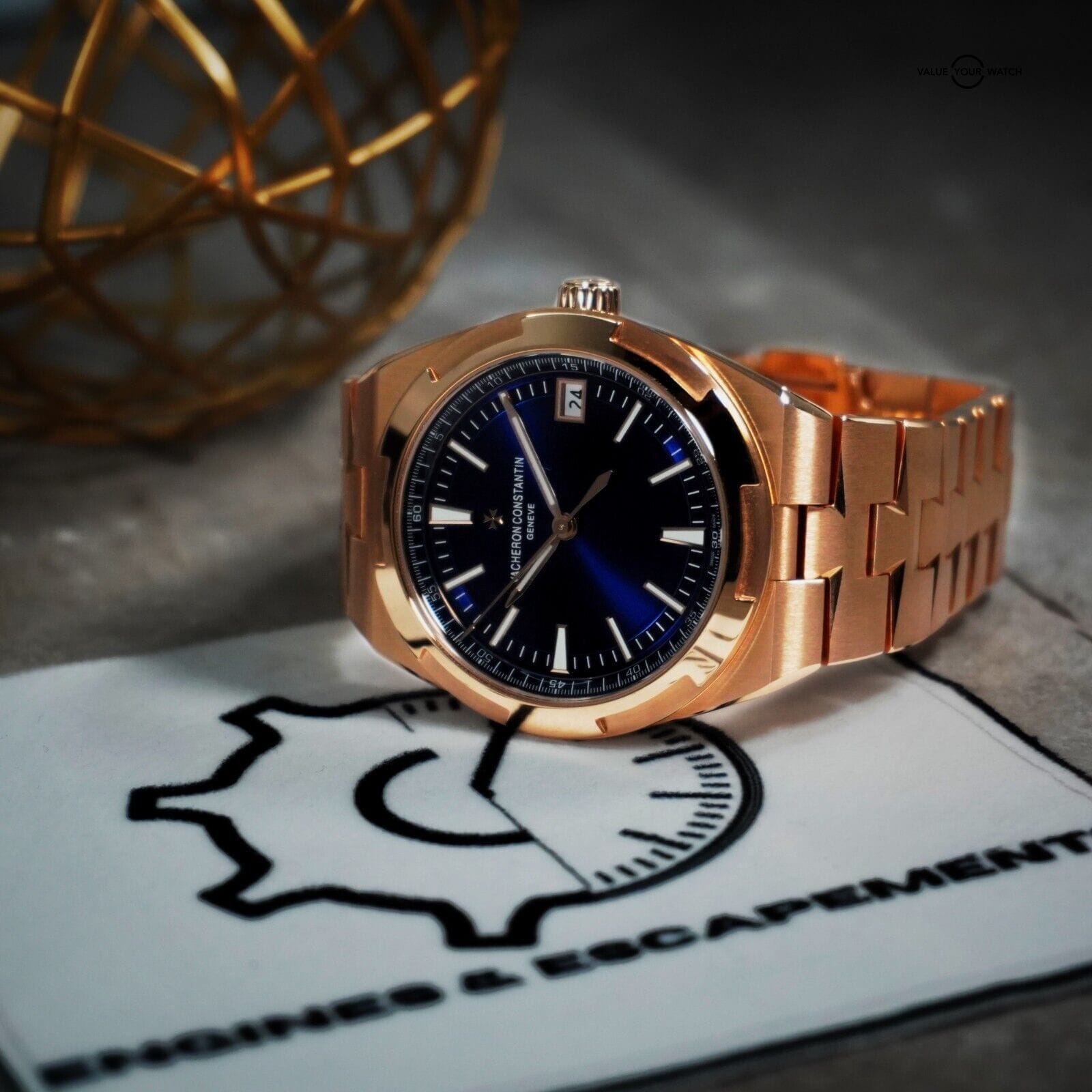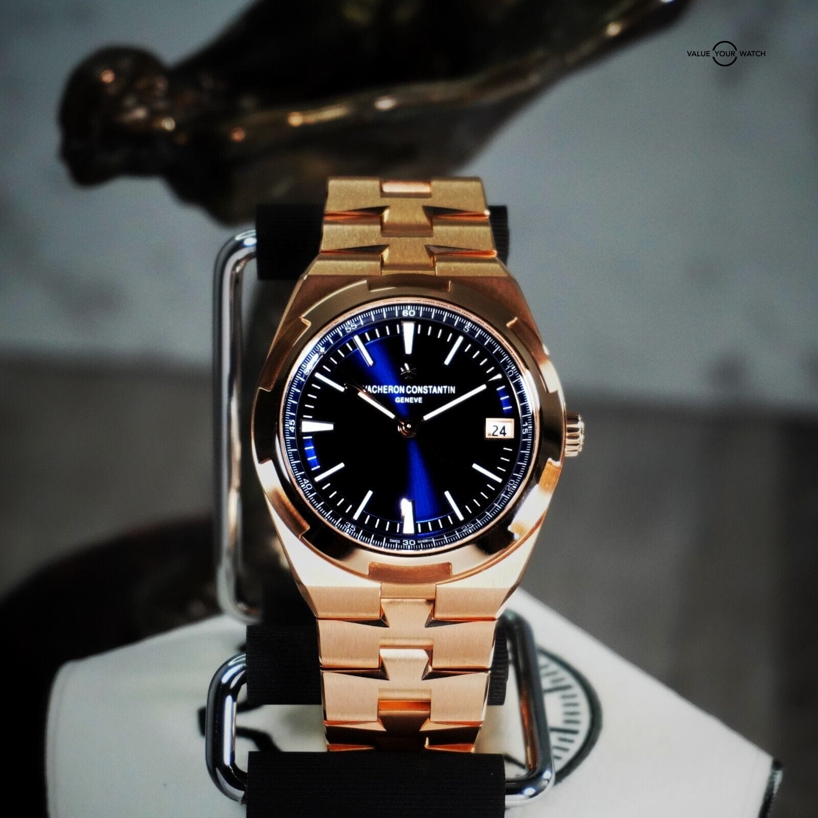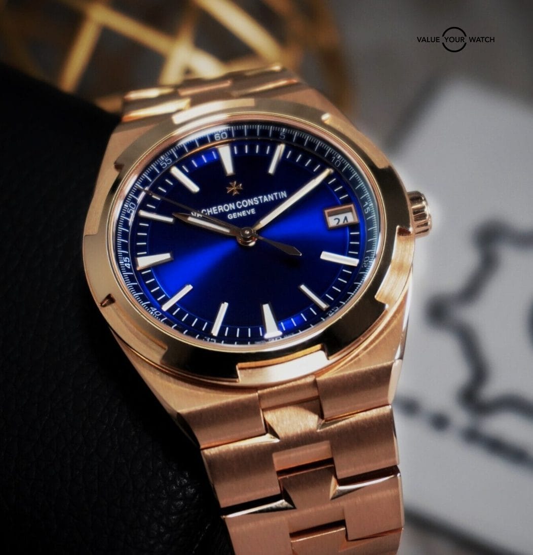 Stunning Vacheron Constantin Overseas with striking blue dial. This timepiece needs no introduction as its one of the flagship models in Vacheron’s lineup. This beautiful timepiece features a beautiful movement produced in-house by Vacheron, visable through the exhibition caseback. The amazing blue dial works so well against the rose gold case & this timepiece feels superb on the wrist.