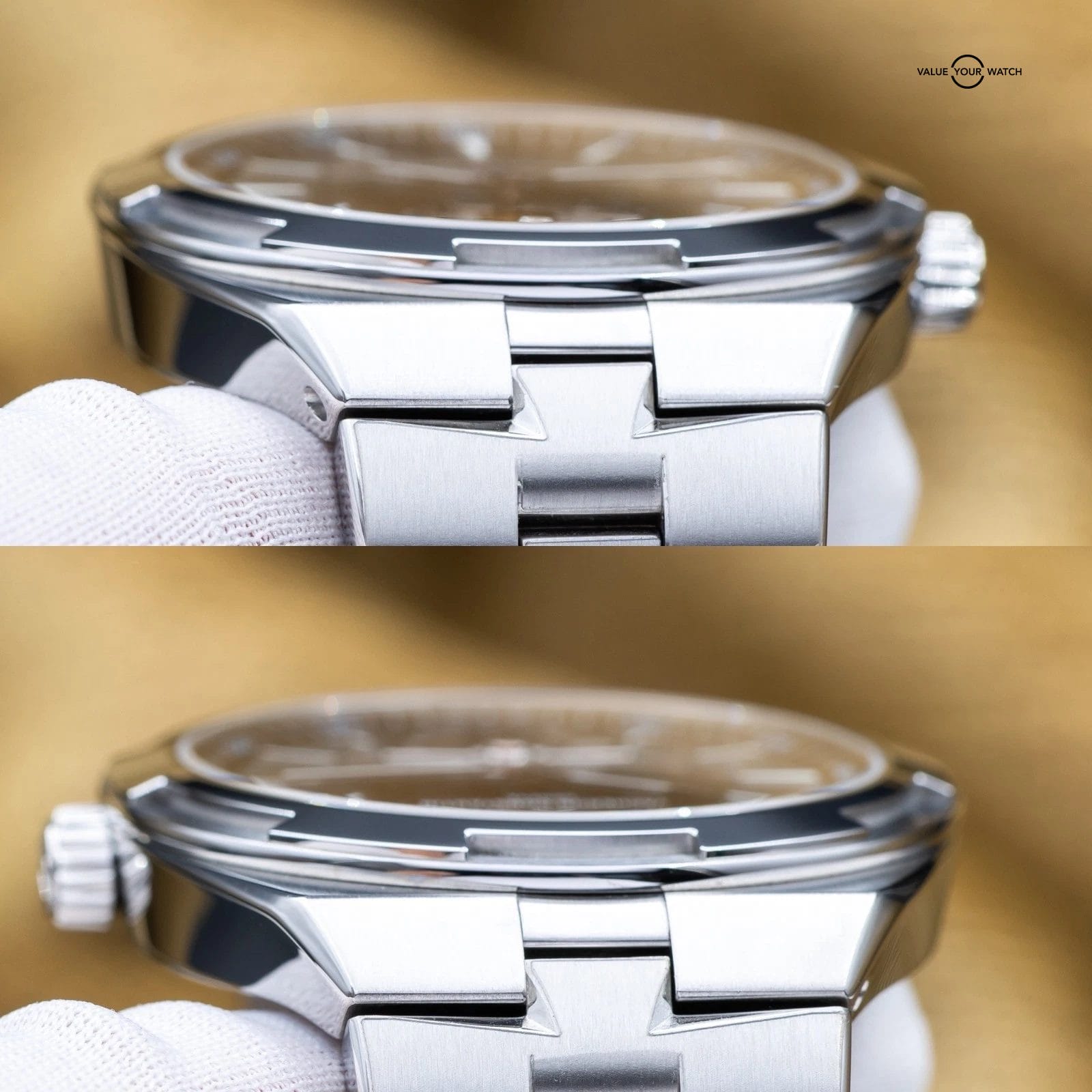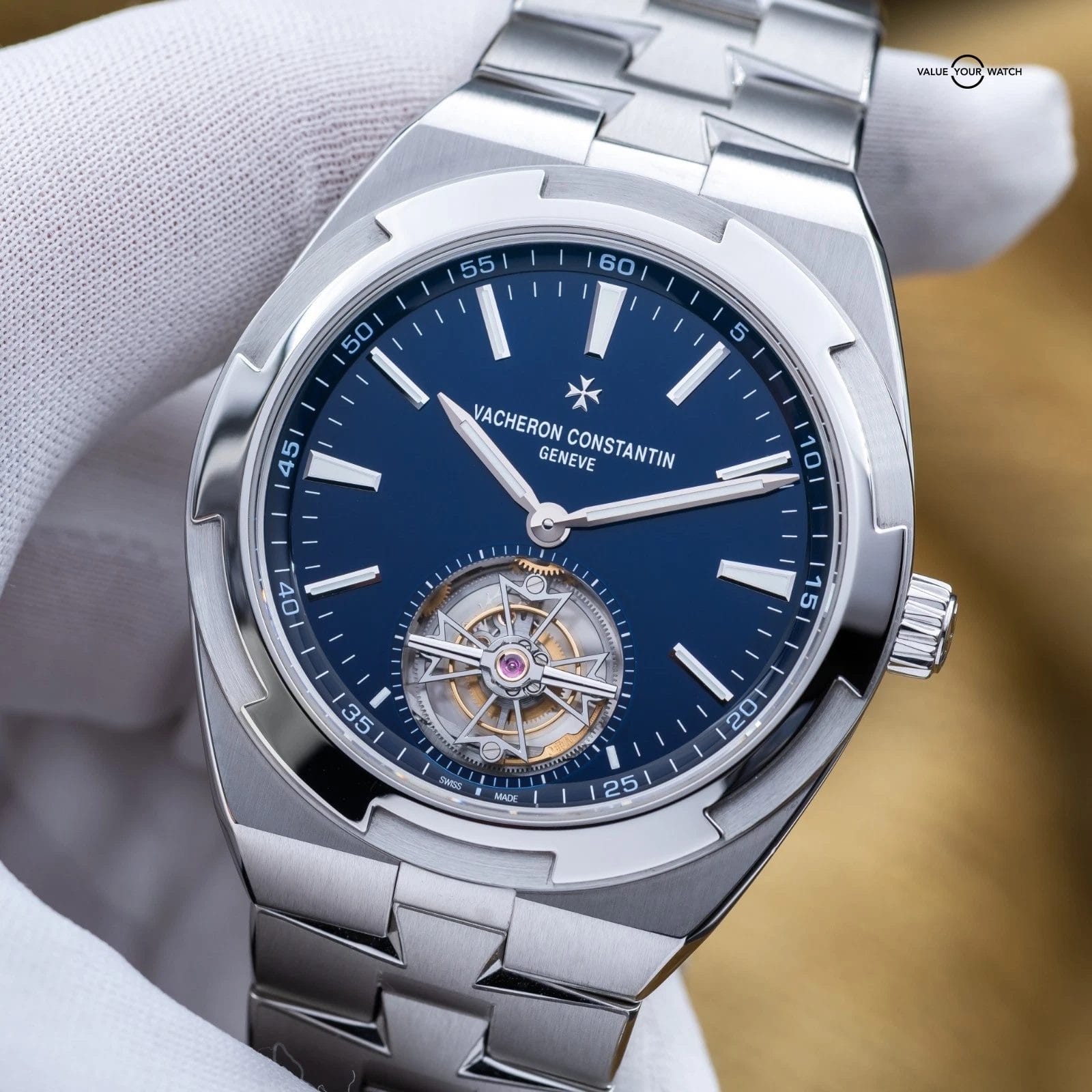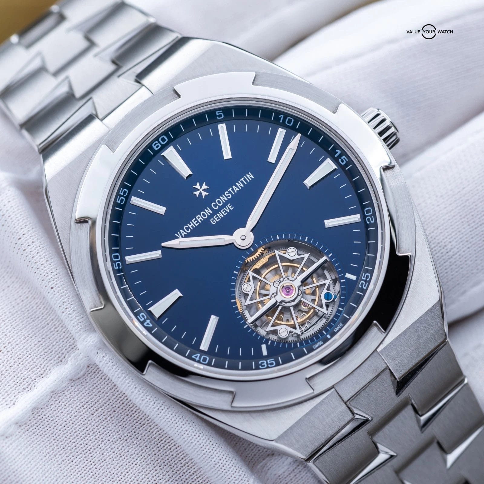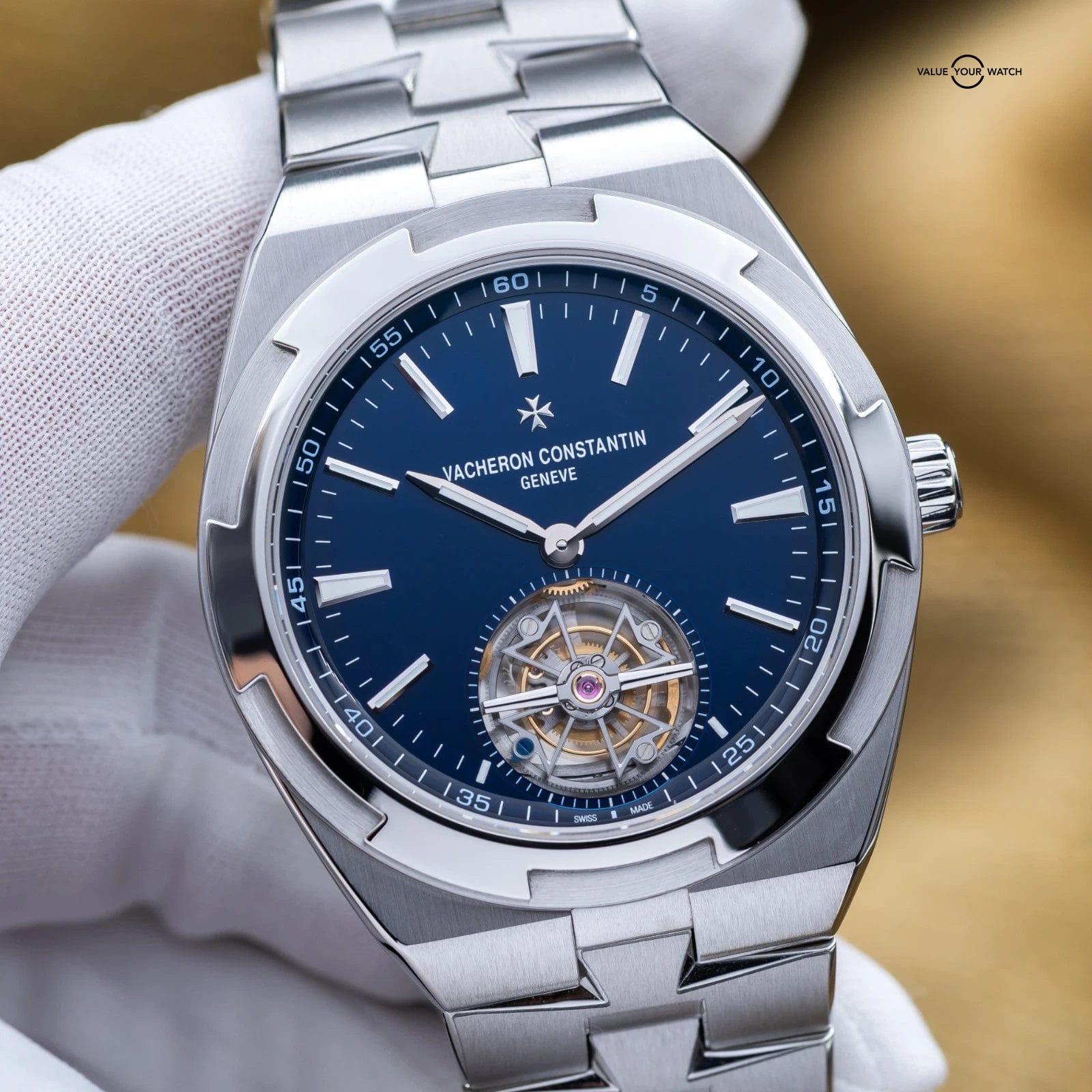 Holy trinity grail alert…Vacheron Constantin Overseas with a Tourbillon! It features a 42.5 mm case with the signature Maltese cross–inspired bezel and a clean, sunburst dial that highlights the tourbillon at 6 o’clock. Inside is Vacheron Constantin’s in-house Calibre 2160 automatic movement featuring the exposed tourbillon, which is visible through the front and back of the watch. For those of you who have been looking for a grail to round out their collection, or just check that tourbillon box, here’s your chance!