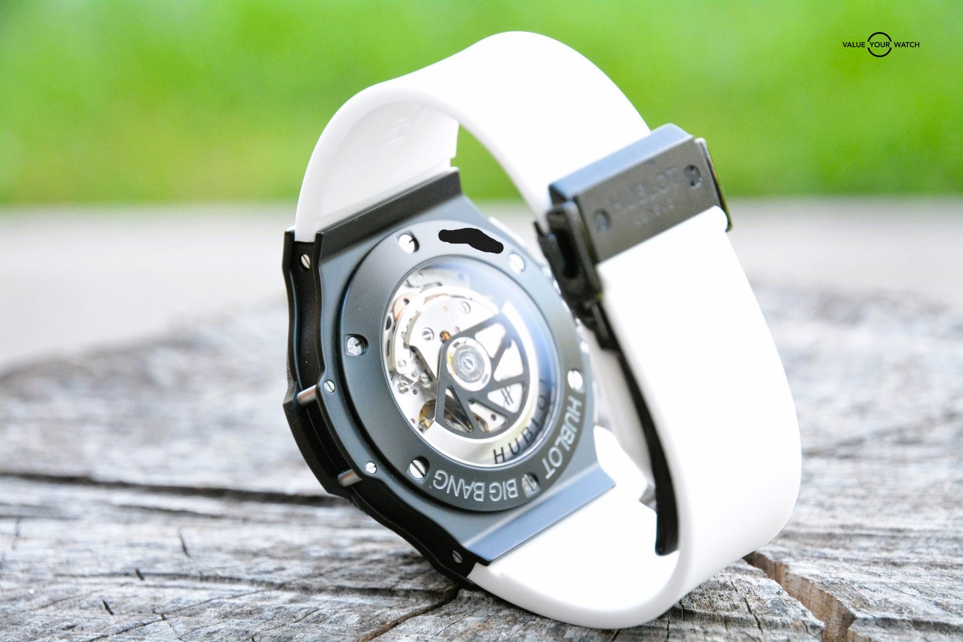 Daring, powerful, original and technical. That describes the amazing Hublot Big Bang Aero Bang in all it’s glory. The skeleton dial is a staple feature of the Aero Bang. The exhibition see-through case back allows full view of this piece’s inner workings. Currently comes with “WHITE HORUS rubber strap as seen in pics.