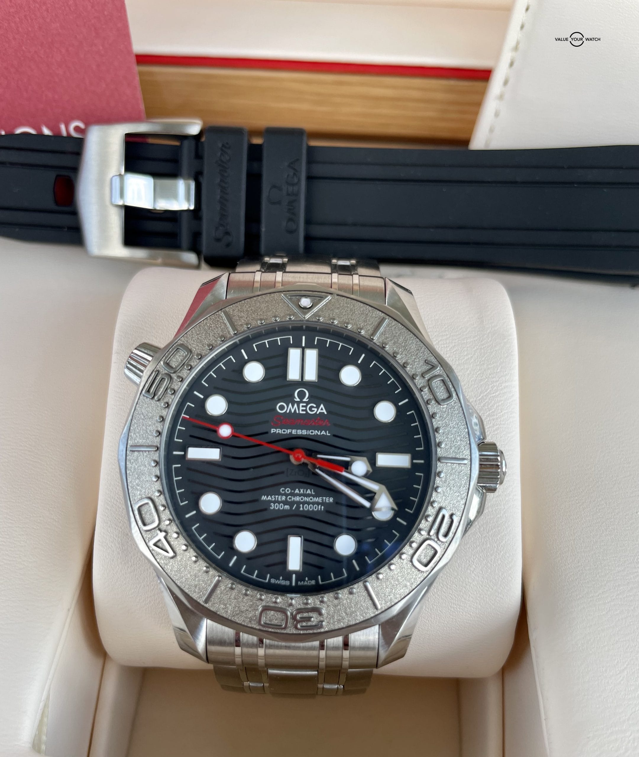 Watch is in overall mint working condition with no major sights of wear throughout. Watch is from this year 2022 and is keeping excellent time with no mechanical issues. Watch comes with the white outer white box, Large wood color Omega box, Cards, tag and manual. I will include a black rubber aftermarket strap.