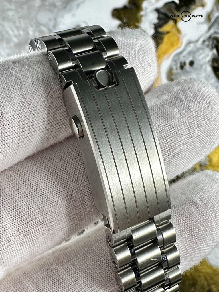 This timepiece is in excellent condition in all aspects. The watch is keeping excellent time. Enthusiasts will also lend a nod to Omega for the 60 hour power reserve, meaning less winding and more wrist time, while still being able to appreciate the art of watchmaking at its roots.