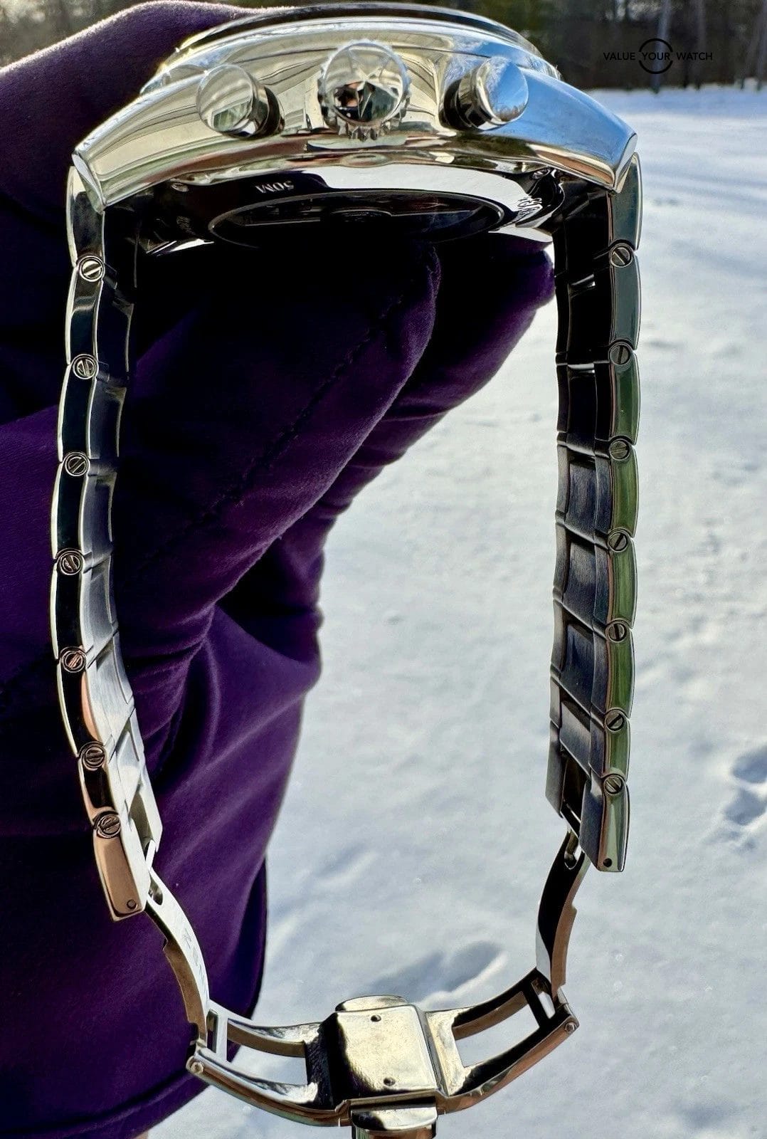 • Silver dial with chronograph registers