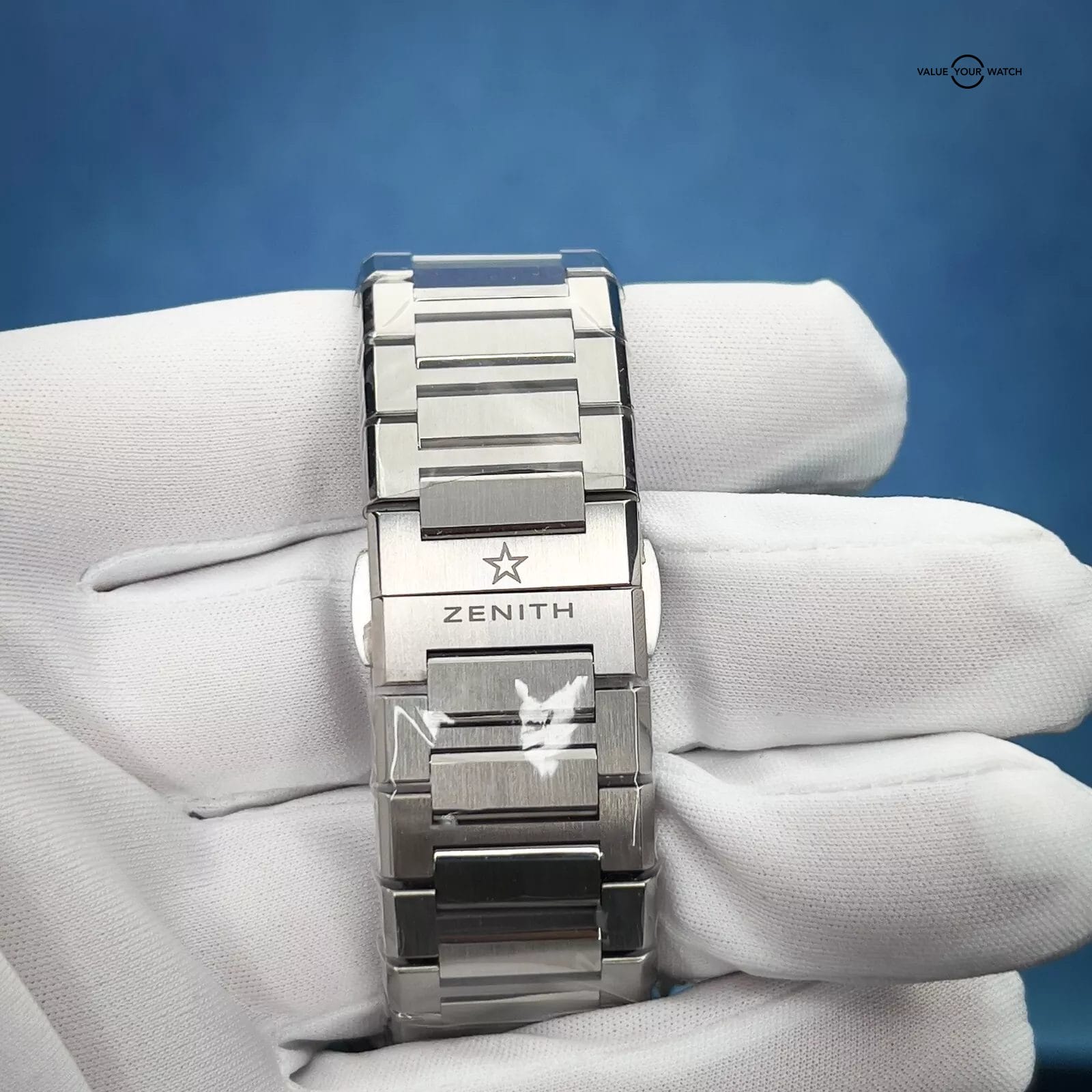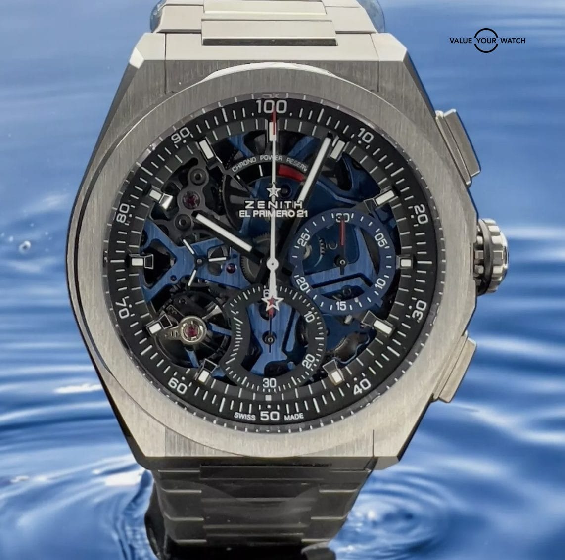 Crafting the future of watchmaking. The ZENITH DEFY EL PRIMERO TITANIUM is the epitome of Zenith’s endless pursuit of precision through innovation. Combining cutting-edge manufacture movements with futuristic forms and materials. The DEFY EL PRIMERO TITANIUM is an automatic, open dial watch that evokes contemporary architecture housed within the futuristic DEFY TITANIUM case. The open face skeleton dial takes on an angular star motif, revealing the Elite automatic manufacture movement within, providing a great sense of visual depth and volume while setting new standards of performance and style. Being made with titanium it has a bold presence yet is incredibly lightweight on the wrist.