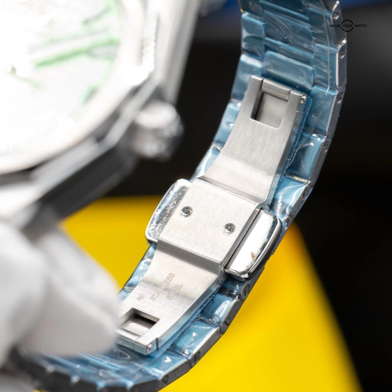 Watch is New & Unworn; Still has factory protective tape on the bracelet. All functions have been inspected and working properly. Serial numbers are obscured in photos for privacy reasons. All photos are taken by our in-house photographer of the actual item and is the best visual description of the condition we can provide. Please refer to the photos closely for condition. If you need additional photos or have any questions, please feel free to contact us.