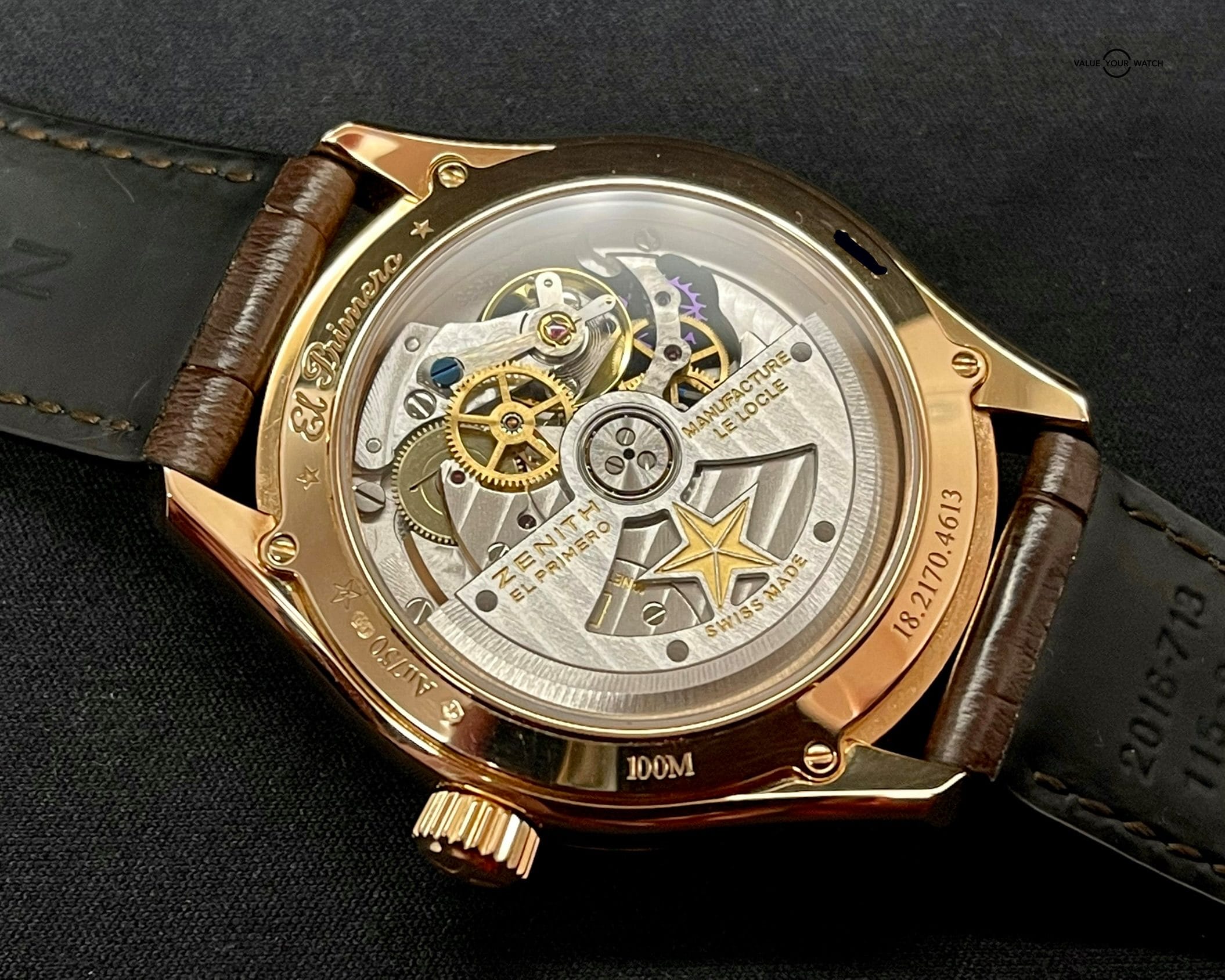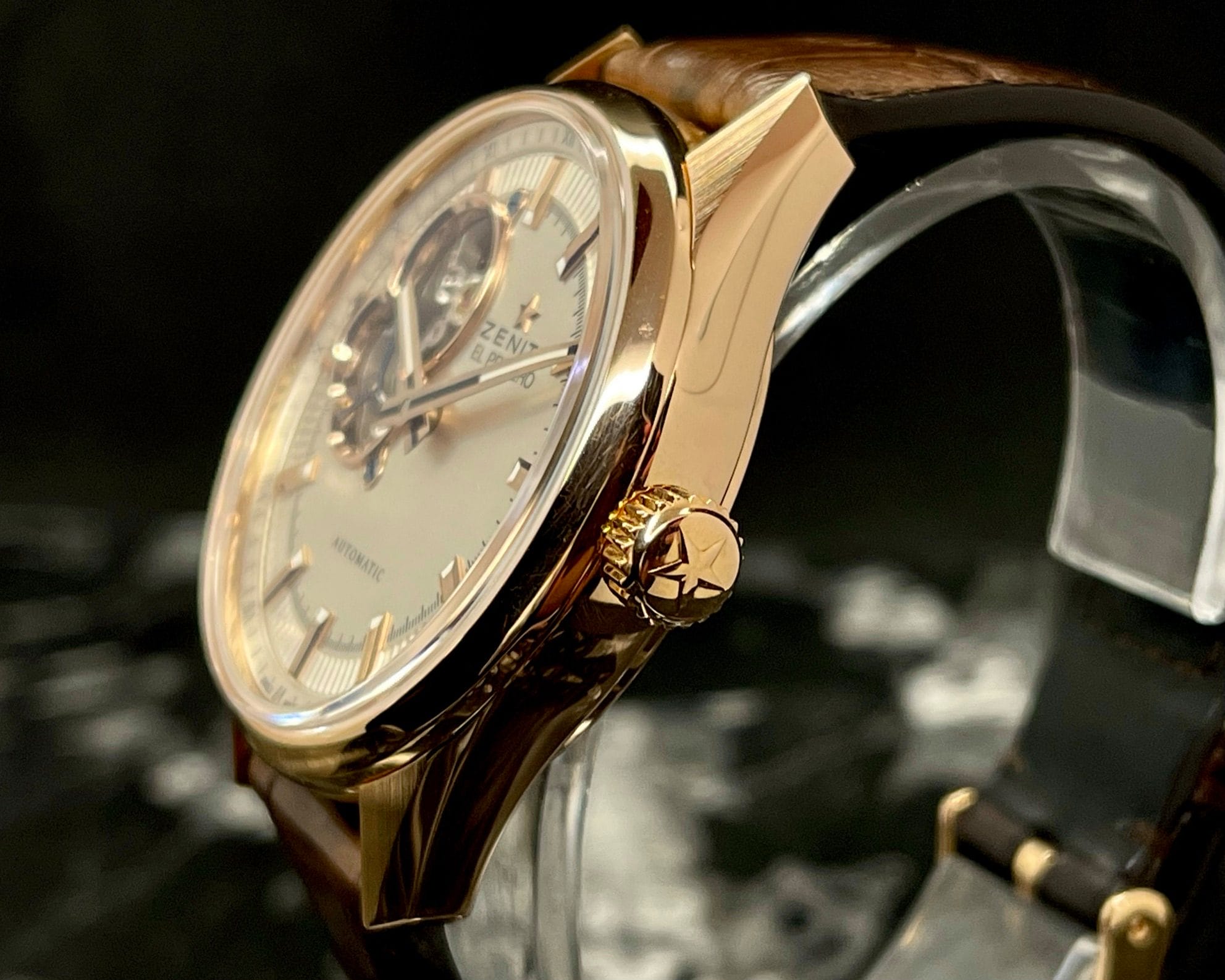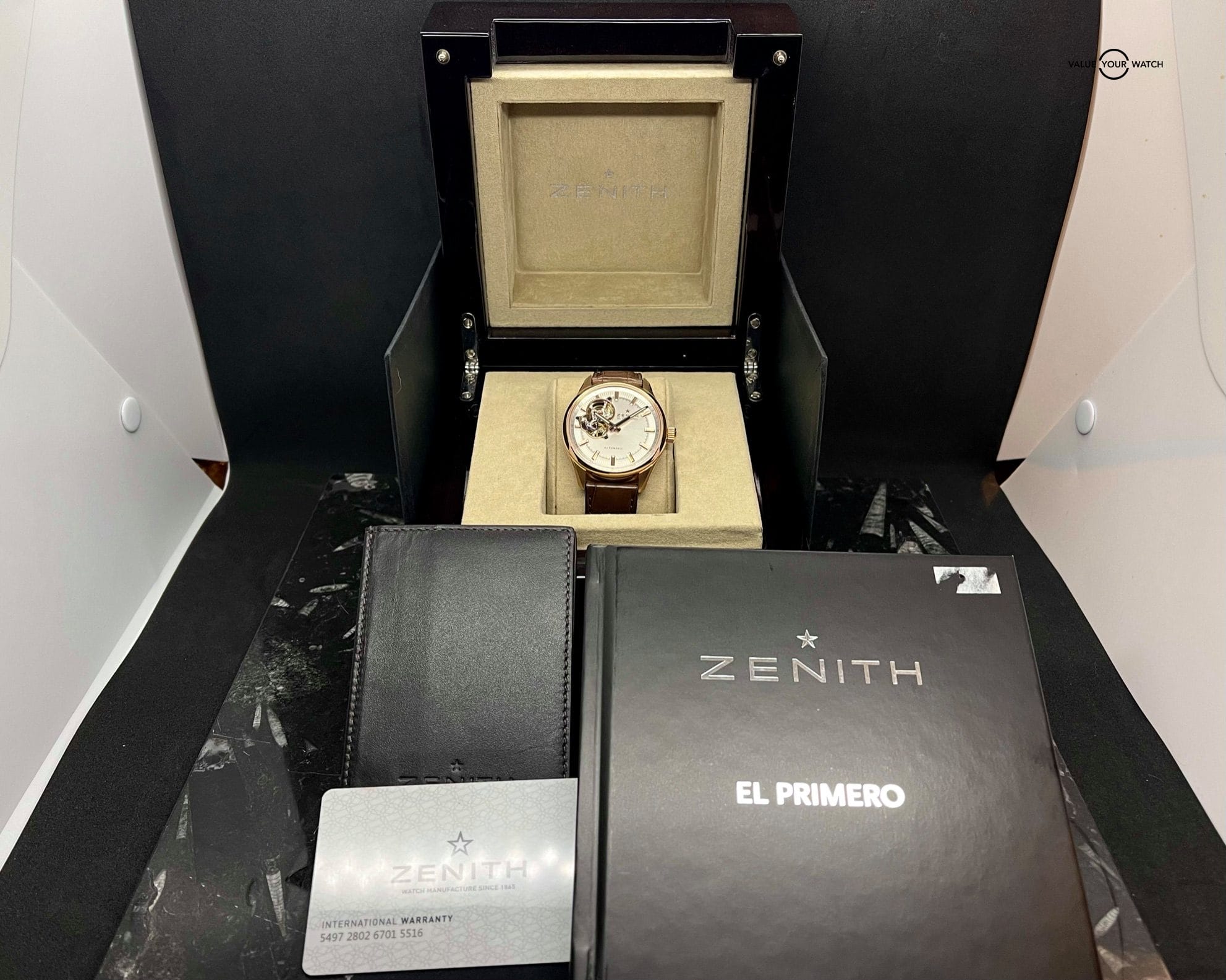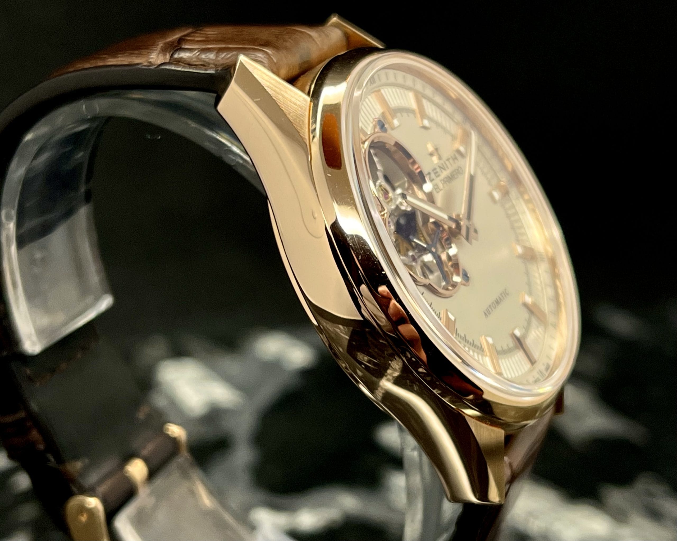 Up for sale is this striking sold rose gold Zenith with its stunning open heart design! This watch also features 100m of water resistance, an extremely impressive rating for such a dressy watch.