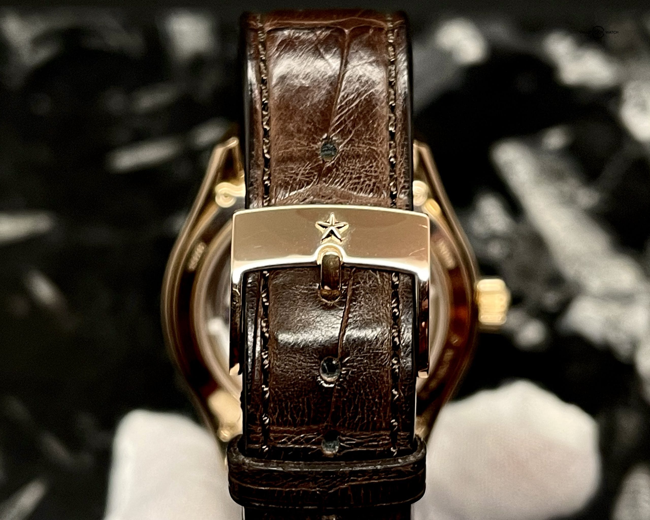 This watch comes with outer cardboard box, inner wooden box, warranty card, leather card holder, and instruction manual. The leather band is in almost perfect condition, the case is near mint, the buckle has one or two hairline scratches, and the sapphire is flawless. The original retail price of this watch was $13,600 (or $15,300 depending on where you look). Get this beautiful pre-owned time piece before it’s gone!